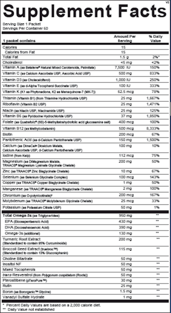 • Provides Baseline Nutrition for a Variety of Protocols • Promotes Antioxidant Protection and a Balanced Inflammatory Response* • Provides Essential Fatty Acids
