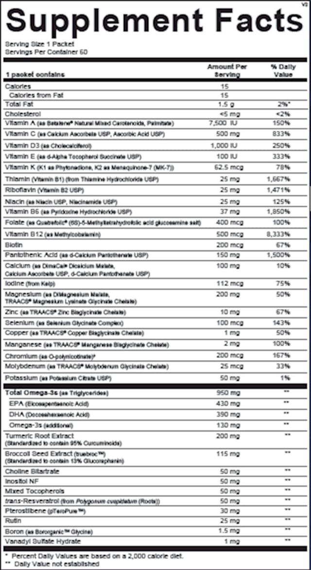 Alpha Base Premier Pack 60 offers a high-quality, comprehensive nutritional foundation in convenient daily packets. This formula supports overall wellness by promoting antioxidant protection, maintaining a balanced inflammatory response, and providing essential fatty acids. It is designed for individuals seeking versatile baseline nutrition to complement a variety of health and wellness routines.