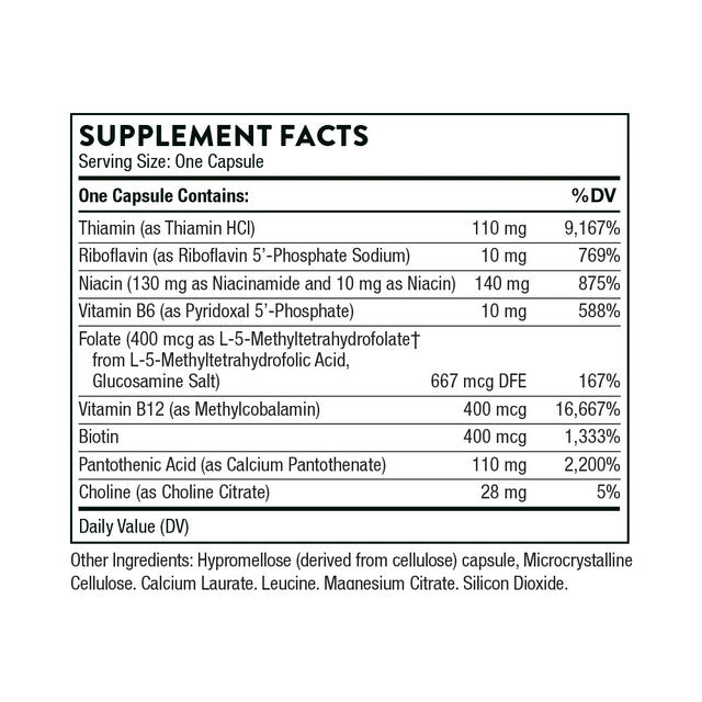 Thorne Basic B Complex provides a balanced blend of active B vitamins in forms designed for enhanced absorption and utilization. This formula supports overall energy metabolism, healthy nervous system function, and general well-being. It is ideal for individuals seeking convenient, high-quality daily B vitamin support in a single supplement.