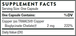 Copper Bisglycinate, an optimally absorbed Albion mineral chelate, supports bone, blood vessel, heart, nerve, and skin health.
