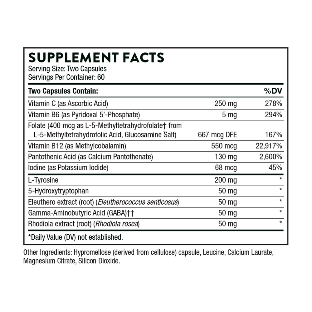 Emotion Balance Support combines several mood-enhancing nutrients and botanicals to promote healthy neurotransmitter and adrenal function.