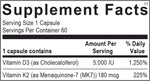 • Provides 180 mcg MenaQ7® PRO vitamin K2 (MK-7) and 5,000 IU vitamin D3 per capsule