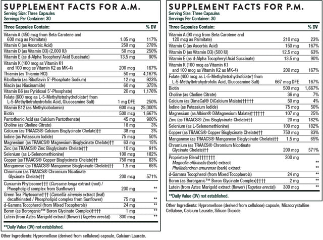 • 180 capsules total, divided between A.M. and P.M. formulations