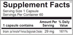 This iron formula from Ortho Molecular Products is offered through our store to help support healthy energy production, oxygen transport, and overall metabolic wellness. It provides 29 mg of elemental iron in the form of ferrous bisglycinate, designed to help maintain normal hemoglobin levels, support balanced iron metabolism, and promote everyday energy and tissue health. As a reseller, we supply this product exactly as provided by the manufacturer, offering a well-tolerated option for daily iron support.
