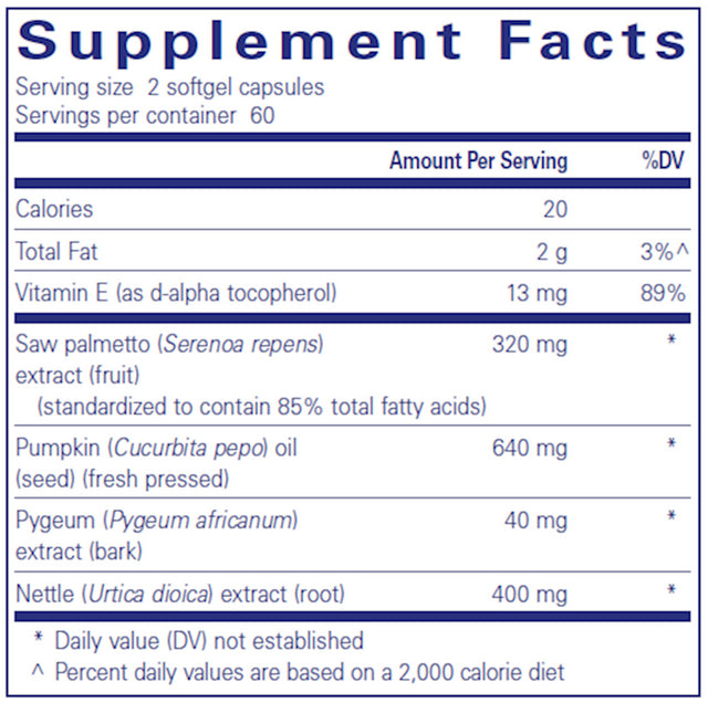 This botanical blend from Pure Encapsulations is offered through our store to help support healthy urinary and reproductive wellness. It features saw palmetto along with complementary nutrients designed to help maintain normal hormonal balance and promote overall well-being. As a reseller, we provide this product exactly as supplied by the manufacturer, offering a reliable option for daily men’s wellness support.