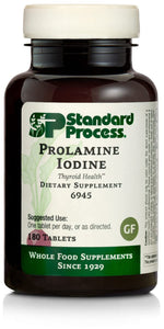 This Prolamine Iodine supplement from Standard Process is offered to help support healthy thyroid function and overall metabolic balance. As a reseller, we provide this formula for individuals seeking a simple way to maintain daily wellness through a consistent source of iodine and complementary minerals. Its thoughtfully designed blend promotes general well-being and supports healthy physiological processes in a convenient 180-tablet supply.