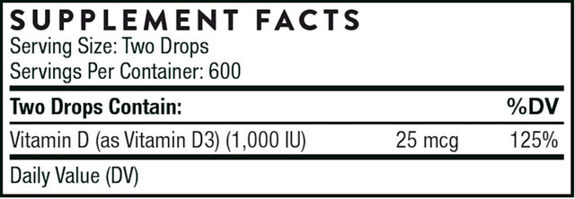 Thorne Vitamin D Liquid 600 IU – 1 Bottle