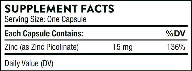Thorne Zinc Picolinate Wellness Support – 60 Capsules (15 mg)